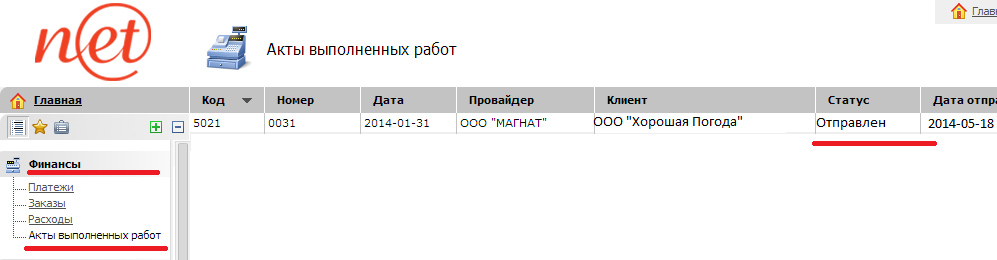 2.3.3. Отправлен (бумажный вариант акт отправлен на почтовый адрес клиента)