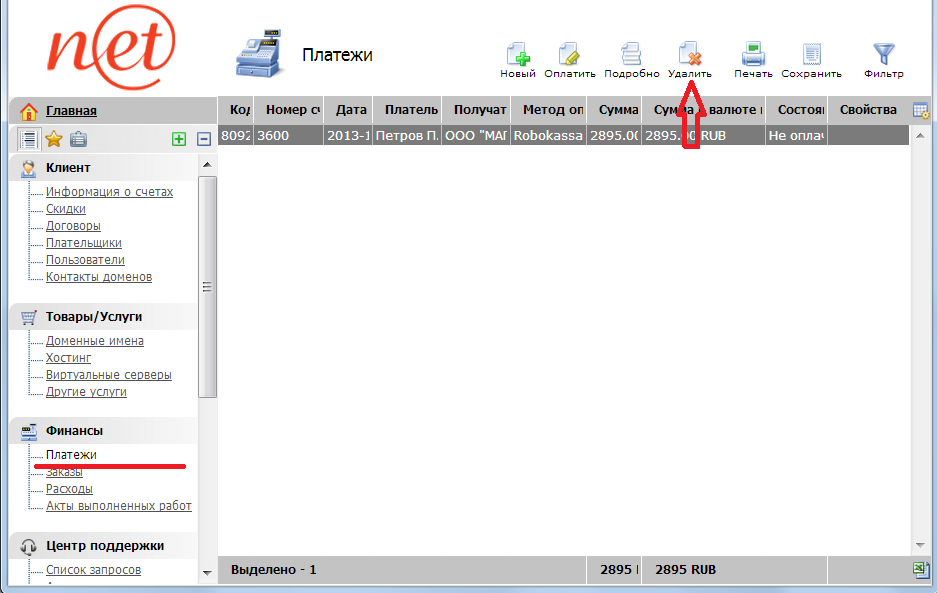 Могу ли удалить, неоплаченный Платеж в BillManager