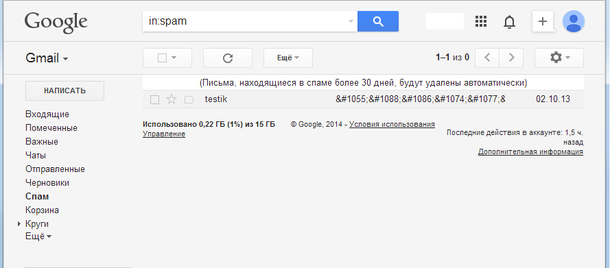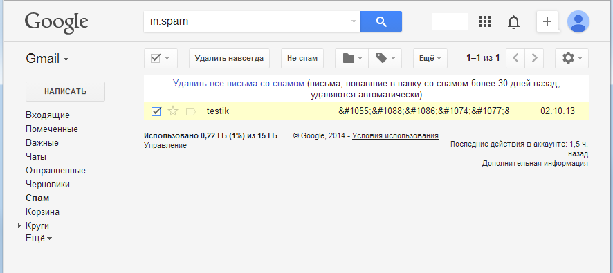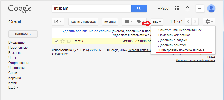 1. Зайдите в папку Спам и выберите того адресата, на которого вы хотите сделать фильтр