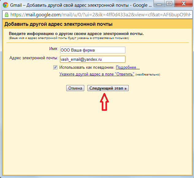 GMail: настройка обратного адреса