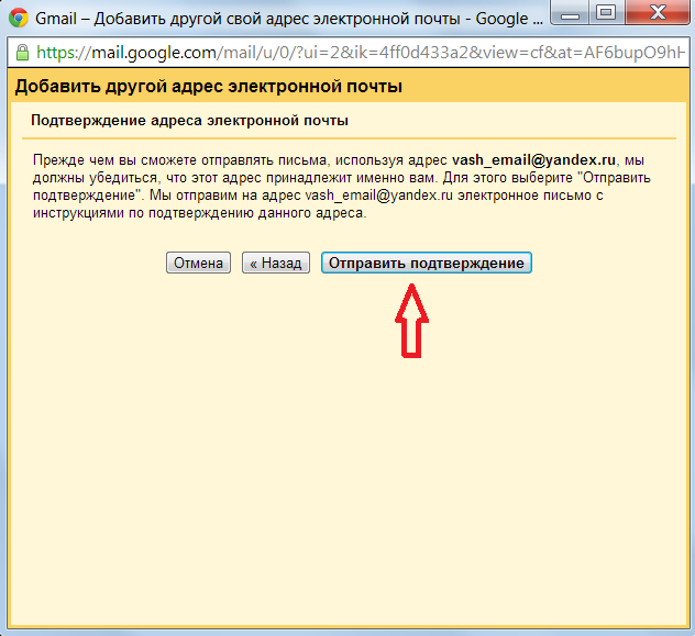и нажмите на ссылку "Добавить другой свой адрес электронной почты"