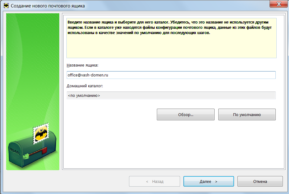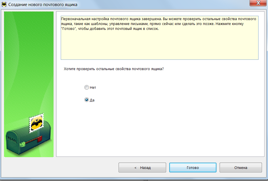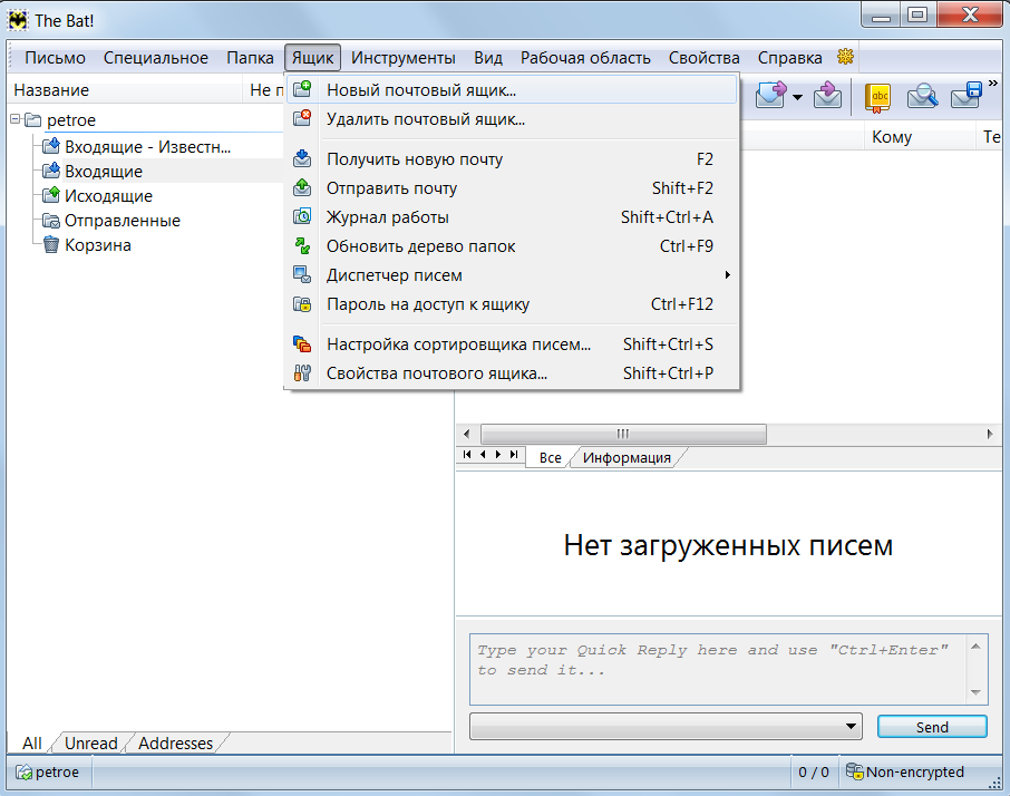 1. Откройте The Bat, наверху в меню найдите раздел Ящик и ,нажав на него, выберите Новый почтовый ящик