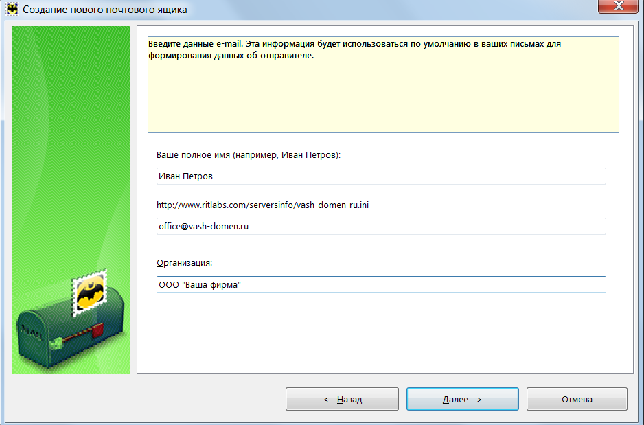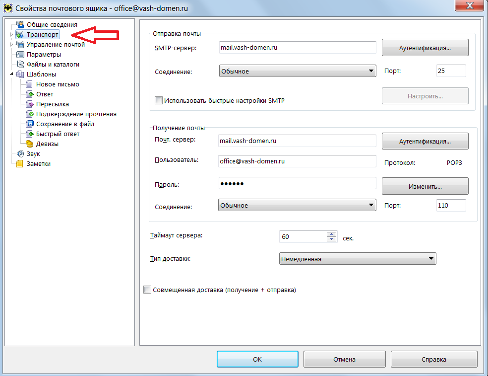 4. Укажите сервера для получения и отправки почты mail.vash-domen.ru